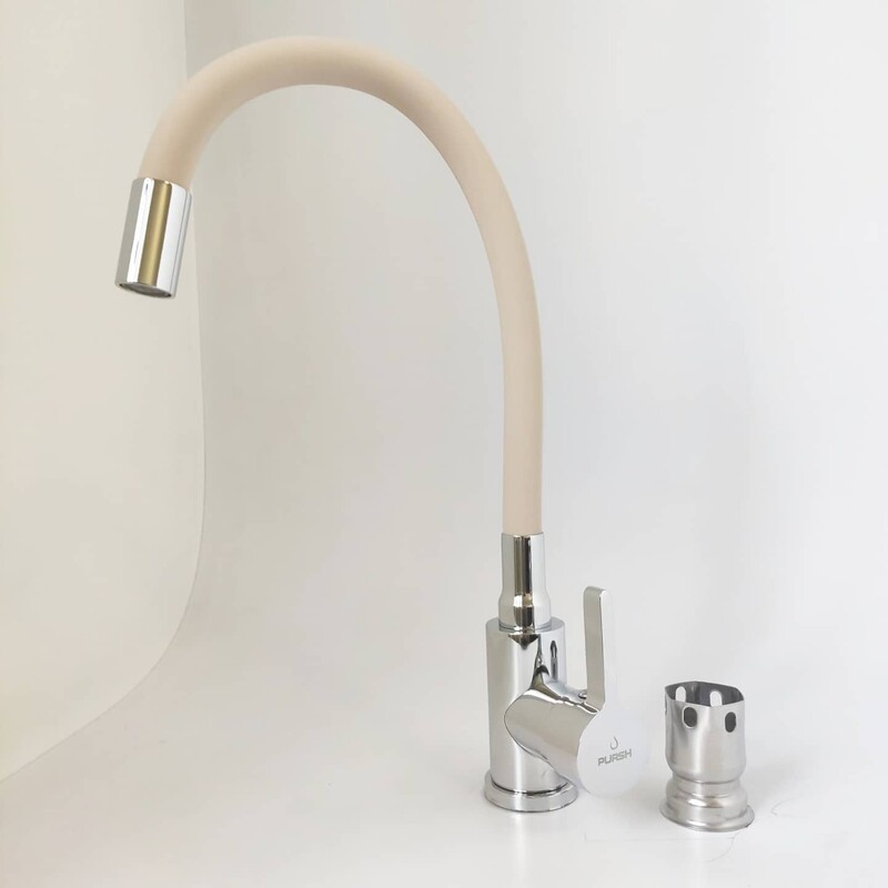 LEMEN. Смеситель Кухня PURSH D35 (нержавеющая сталь,хром,бежевый гибкий излив,гайка) R99308М