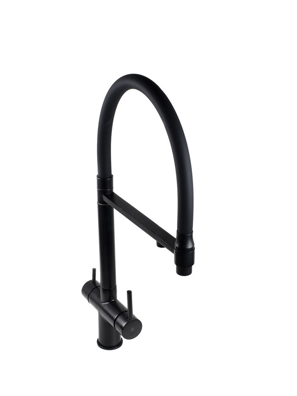 Смеситель Кухня SANTREK AQUA-1033 "PRESTIGE" (SAP-1033) шар. d-35 с гибким силиконовым изливом, с подключением фильтра питьевой воды (черный)