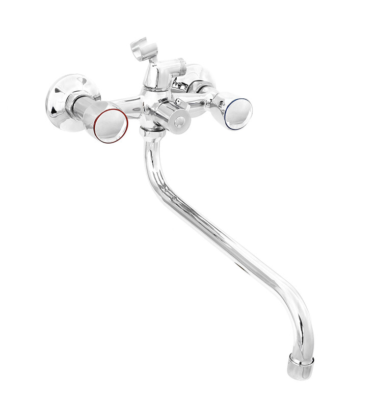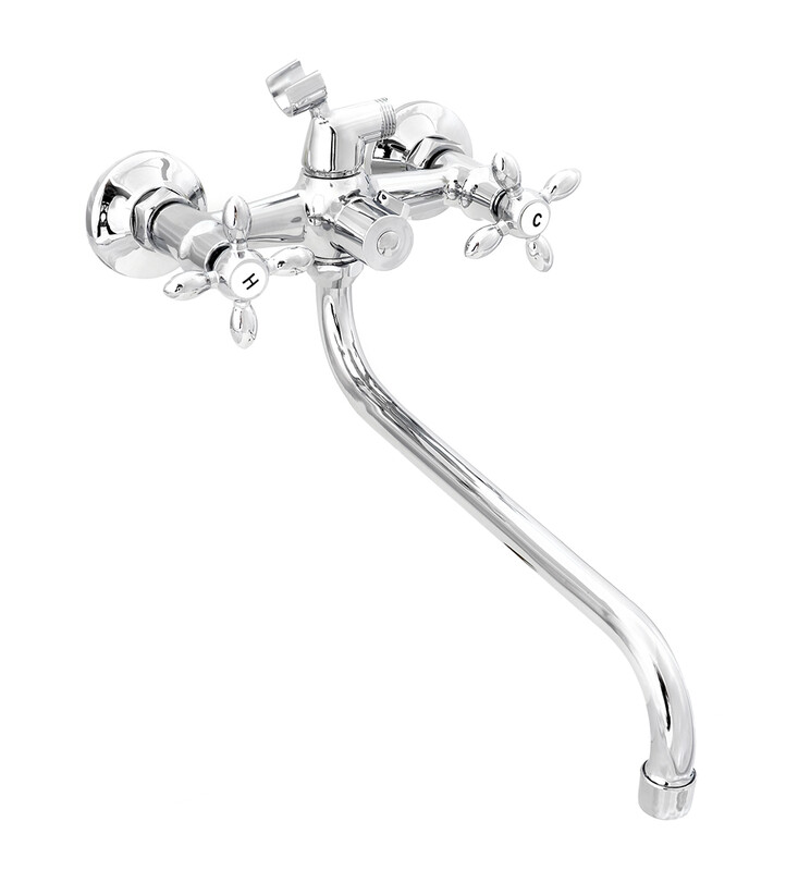 LM3302C Pramen Смеситель для ванны с кор. изливом, с аксессуарами, хром LEMARK