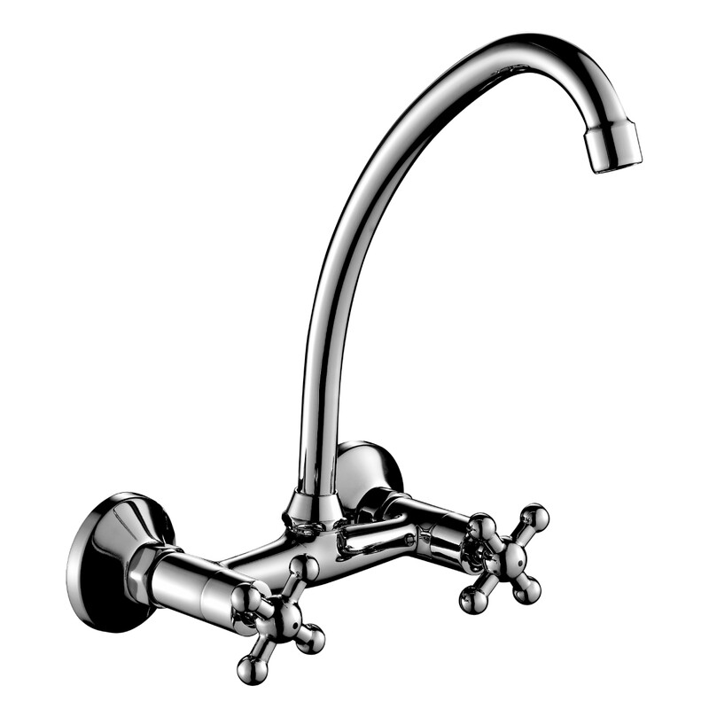 ROSSINKA. Смеситель двуручный для кухни настенный, с верхним изливом, хром G02-73