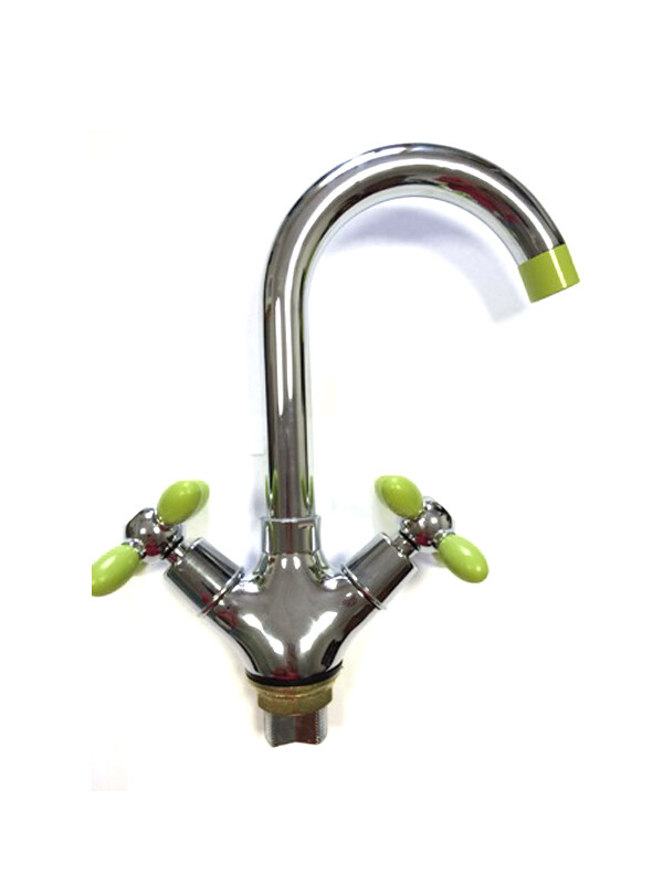 Смеситель Кухня Lemen 1/2 м/к, КРЕСТ, зеленый, на гайке (LD 91634G)