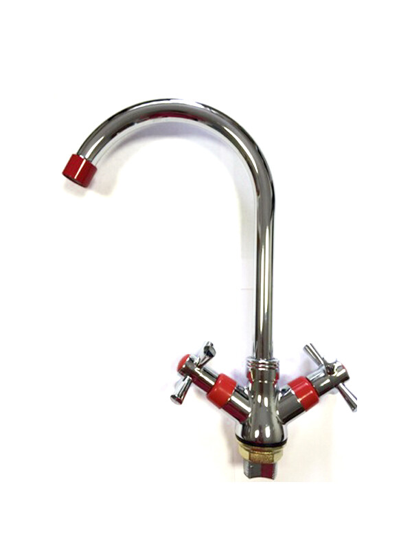 Смеситель Кухня Lemen 1/2 м/к, КРЕСТ, красный, на гайке (LD 91557R)