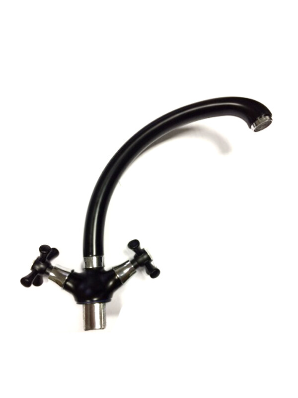 Смеситель Кухня Lemen 1/2 м/к, КРЕСТ, чёрный, на гайке (LD 91765Е)