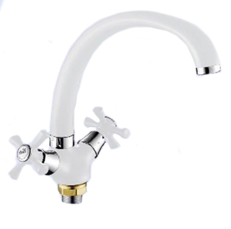 Смеситель Кухня Lemen 1/2 м/к, КРЕСТ, белый, на гайке (LD 91765W)