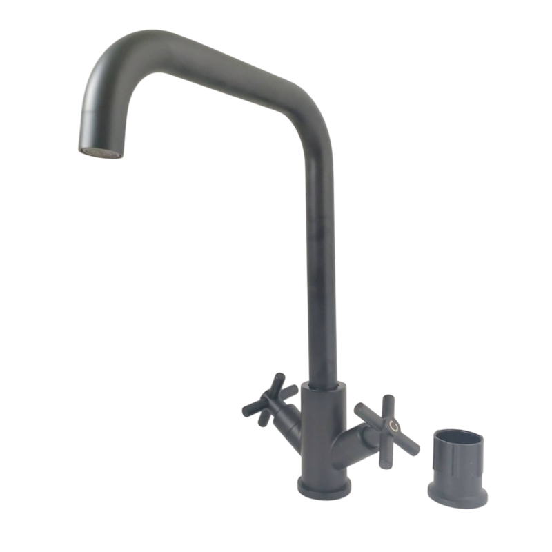 Смеситель кухня Lemen 1/2 м/к Крест, G97211E, высокий излив, цвет черный