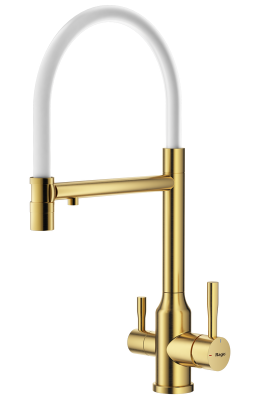 R81.63.03 Смеситель для кухни со съемным изливом на магните и подключением фильтра питьевой воды RAGLO (золотой сатин)