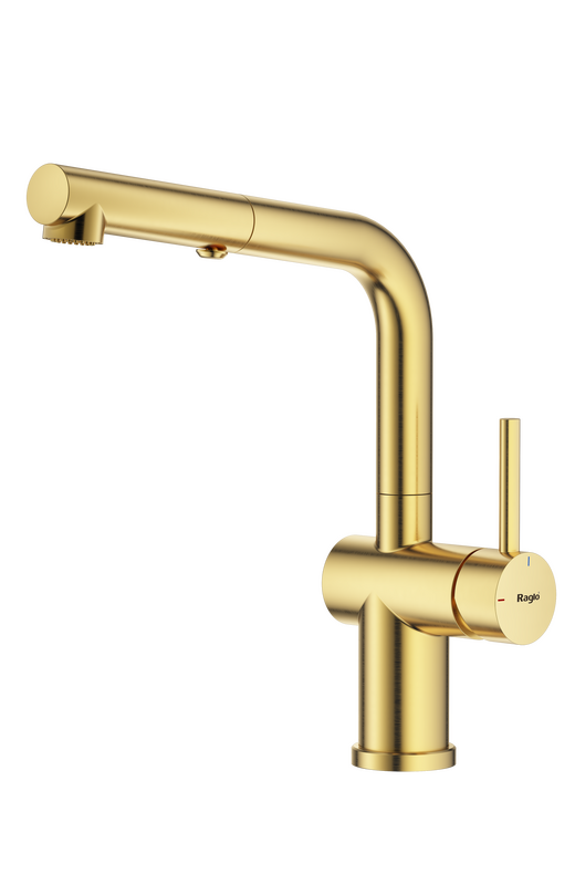R86.49.03 Смеситель для кухни с выдвижным изливом RAGLO (золотой сатин)