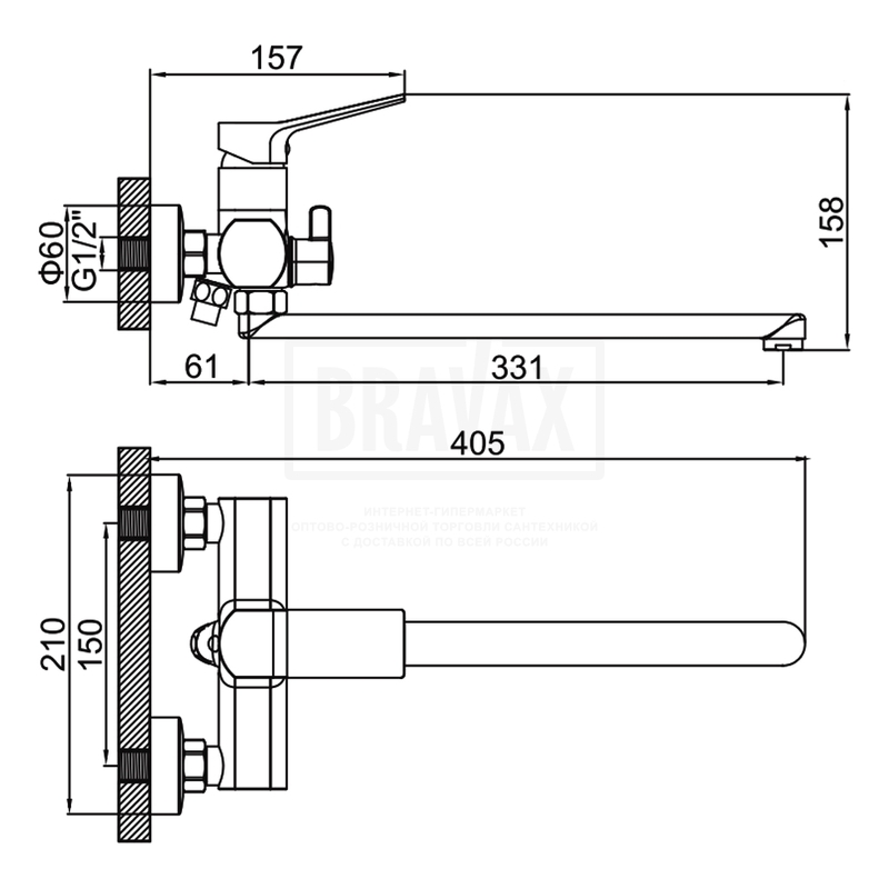 2285D Смеситель Ванна LEDEME шар. d-40 дл.излив (оруж сталь)