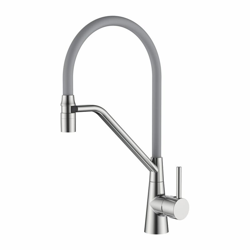 4397A-9 Смеситель Кухня LEDEME с силиконовым изливом МАКСИ (серый/сатин)