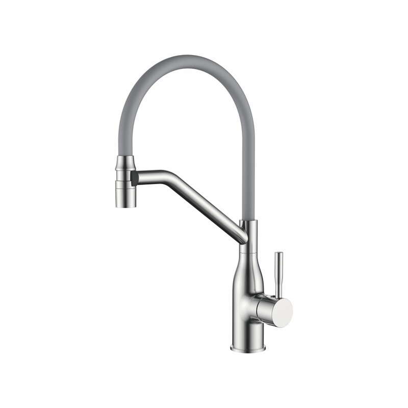 4798A-9 Смеситель Кухня LEDEME с силиконовым изливом МАКСИ (сатин/серый)