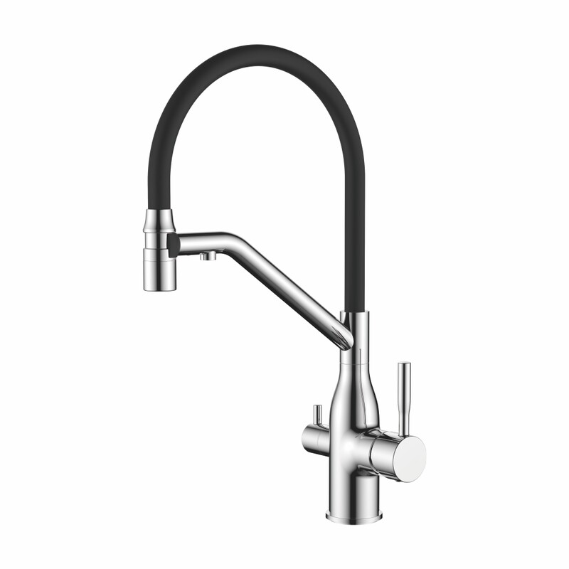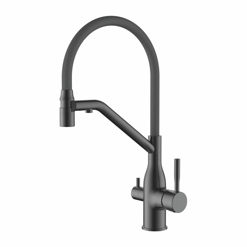 4797D-12 Смеситель Кухня LEDEME шар. с выходом для питьевой воды и магнитным держателем (оруж сталь)