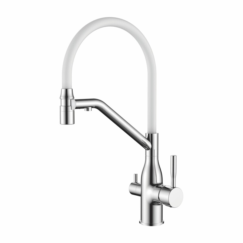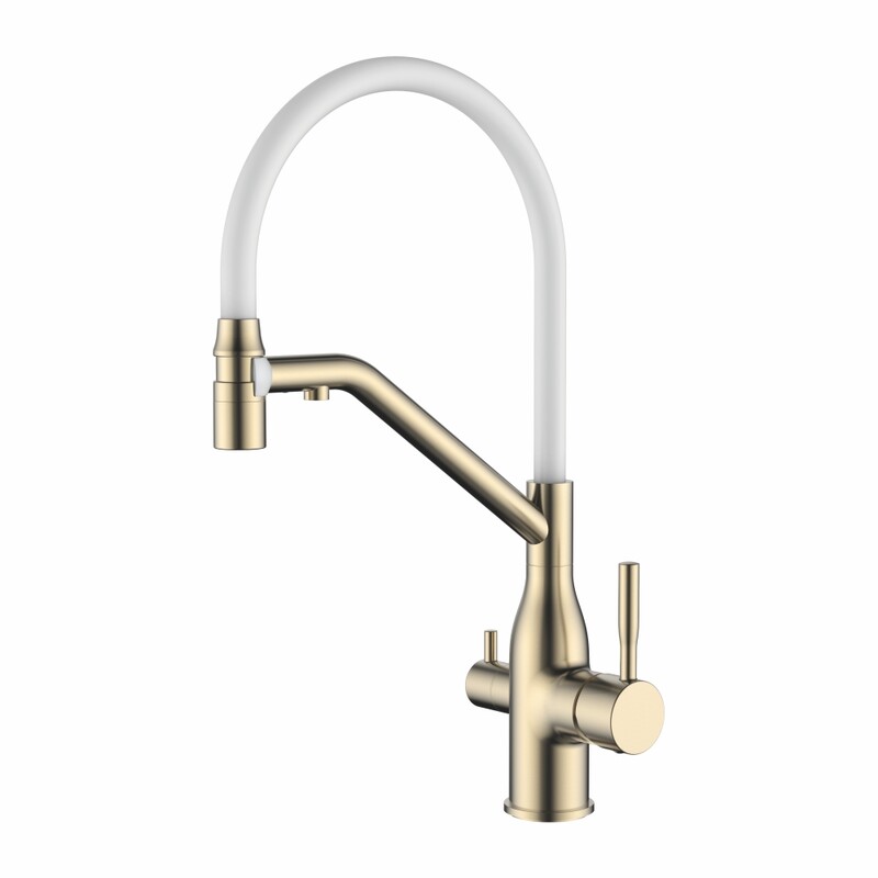 4797Y-3 Смеситель Кухня LEDEME шар. с выходом для питьевой воды и магнитным держателем (белый/золотой сатин)