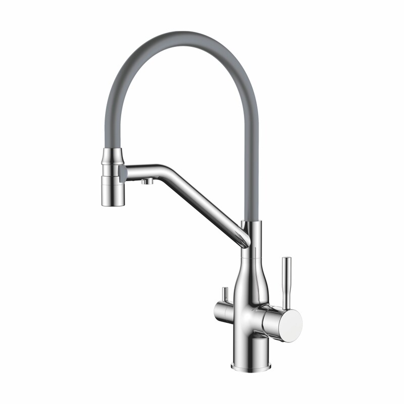 4797-9 Смеситель Кухня LEDEME шар. с гибким изливом и магнитным держателем (серый+хром)