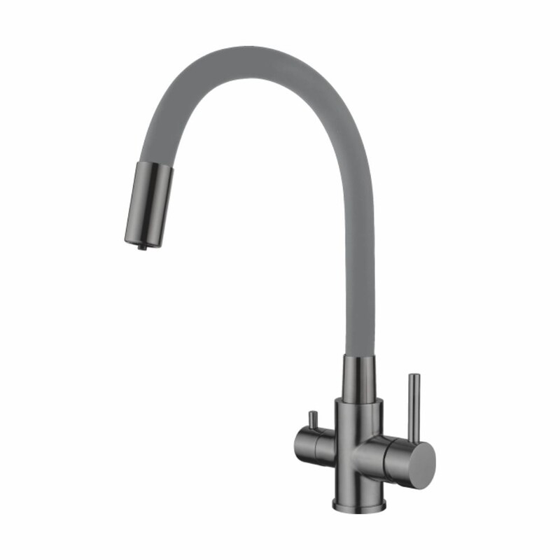 74255D-12 Смеситель Кухня LEDEME шар. с гибким изливом и выходом для питьевой воды (оруж сталь)