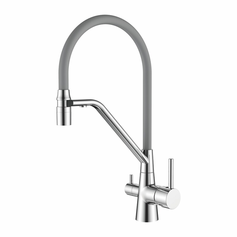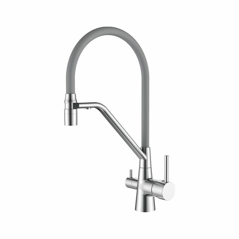 4897-9 Смеситель Кухня LEDEME с выходом для питьевой воды, с силиконовым изливом (серый/хром)