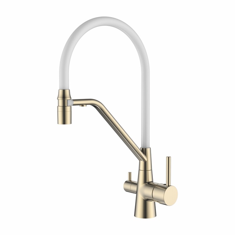 4897Y-3 Смеситель Кухня LEDEME с выходом для питьевой воды, с силиконовым изливом (белый/золотой сатин)