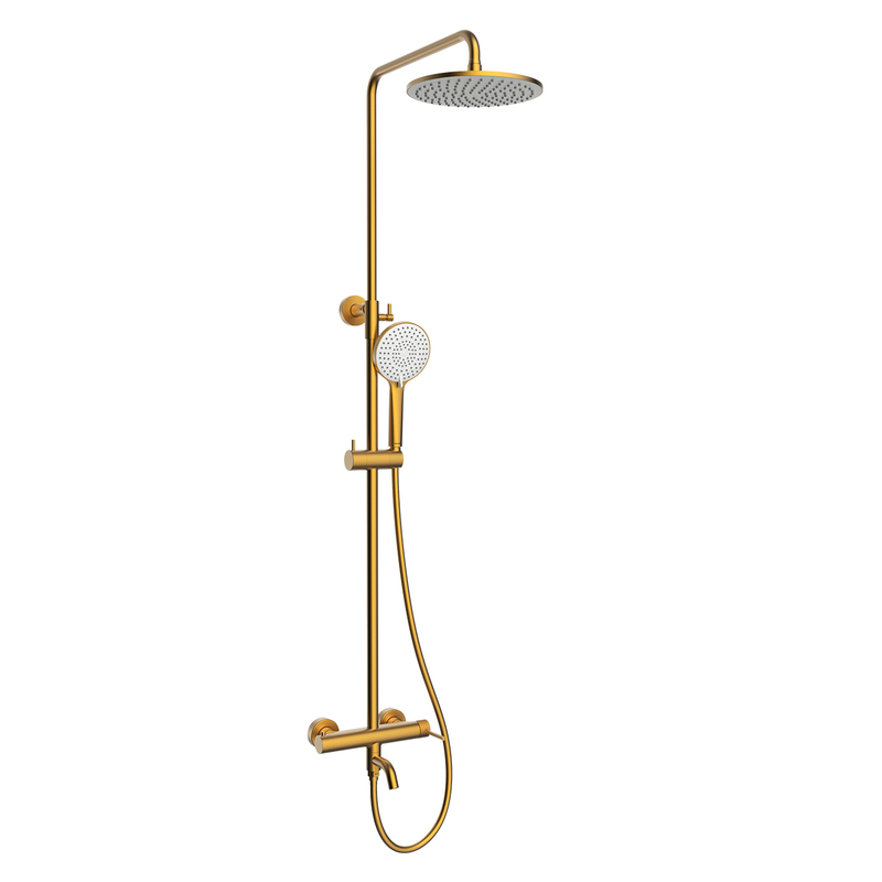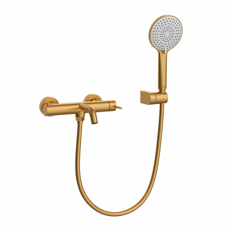 LMF-2026S-BRG Karelia Смеситель для ванны с верхней лейкой 23см(пластик),с изливом,с аксес., латунь,браш. золото LEMARK