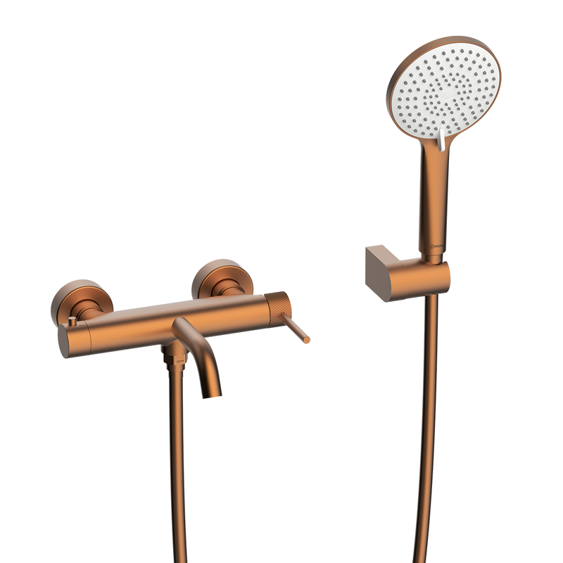 LMF-2126S-BRRG Kalina Смеситель для ванны с верх. лейкой 23см(плас),с изливом,с аксес.,латунь, браш. роз.золото LEMARK