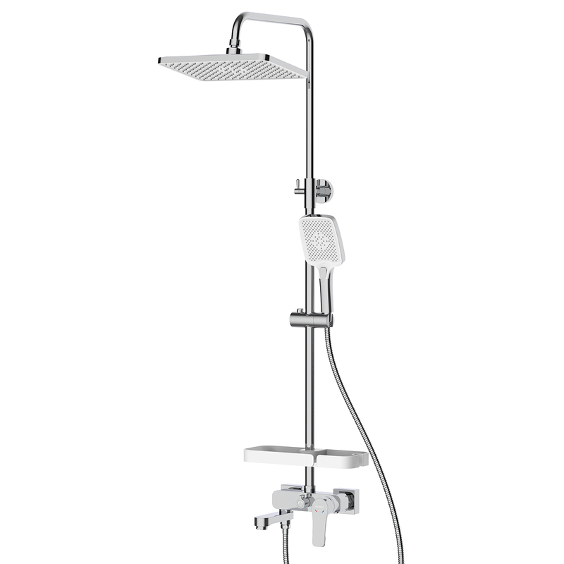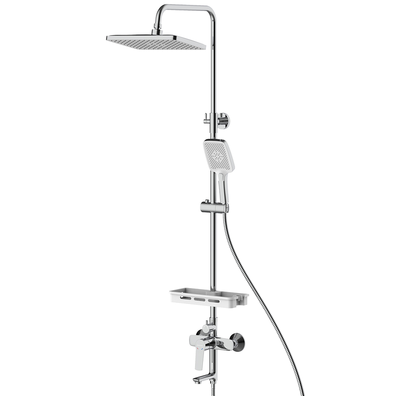 DR23071 Смеситель для ванны и душа с регулируемой высотой штанги и верхней душевой лейкой "Тропический дождь" DECOROOM