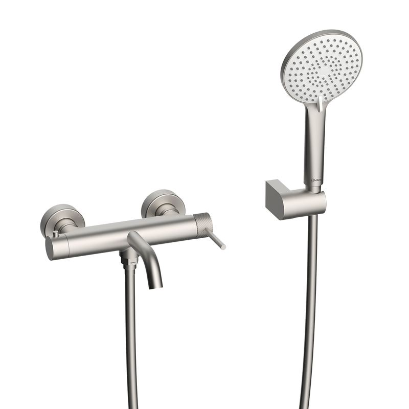LMF-2022S-BN Karelia Смеситель для ванны с изливом, с аксес-ми, нержав. сталь, браш. никель, NANO покрытие LEMARK