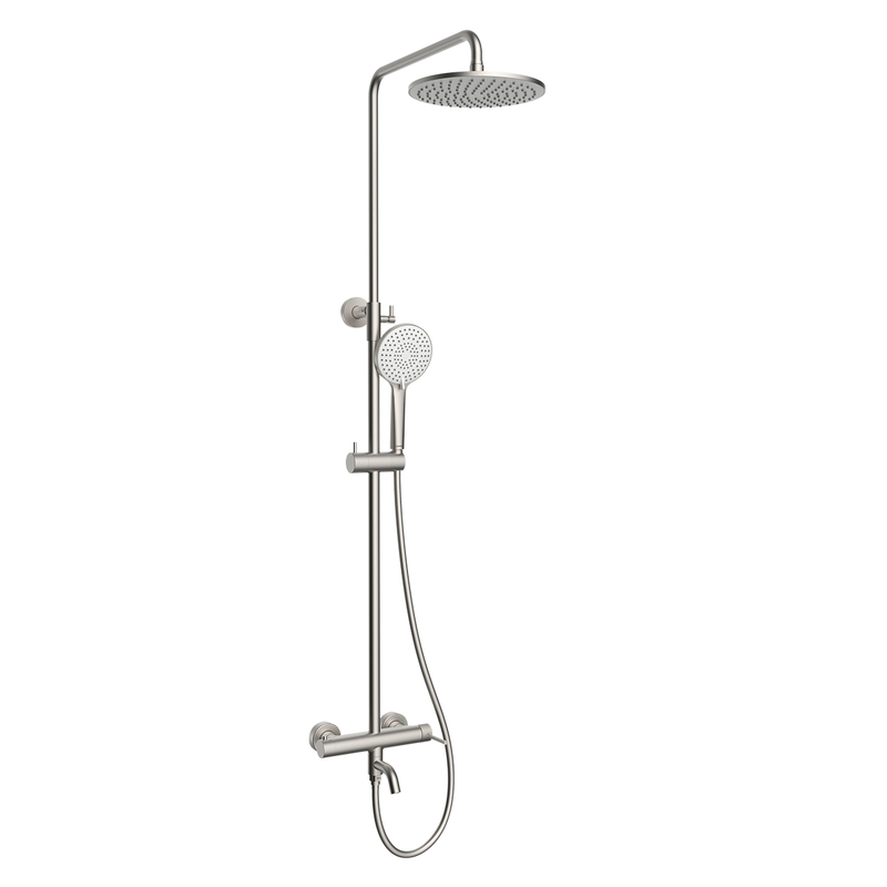 LMF-2026S-BN Karelia Смеситель для ванны с верх. лейкой 23см(пластик),с изливом,с аксес.латунь, браш.никель LEMARK