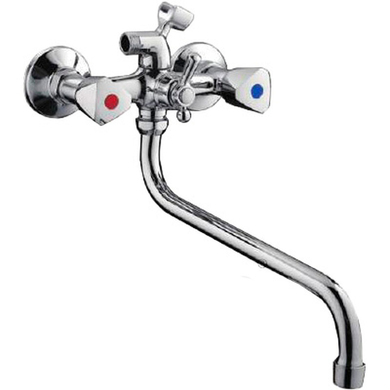 4708 Смеситель Кухня Frap СТЕНА Крест верхний излив