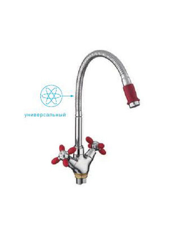 43127-10 Смеситель Кухня FRUD 1/2 м/к гибкий излив (красный) на гайке