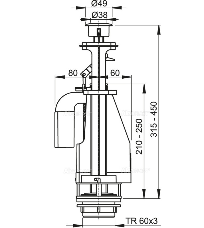 Конструкция позволяет регулировать высоту механизма в зависимости от высоты бачка