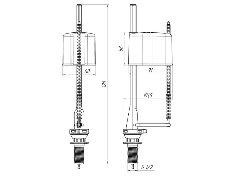 Наливной механизм бачка унитаза WC5550 с нижней подводкой и пластиковой резьбой диаметром G 1/2 эконом.