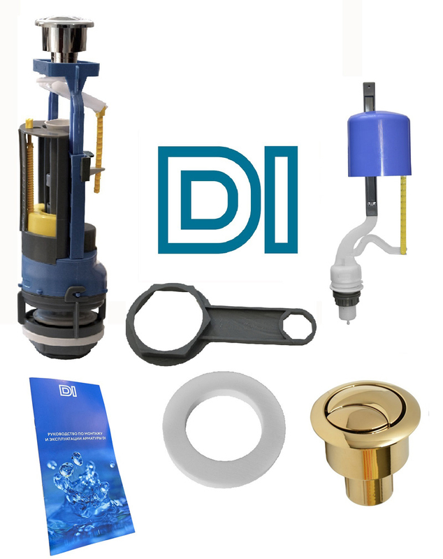 ИНКОЭР. Арматура с 2-пуск. ниж./подв., хр/кн., СБ2М-НпрРФ-ХХ-ККрпс "DUAL CHOICE" золотая кнопка