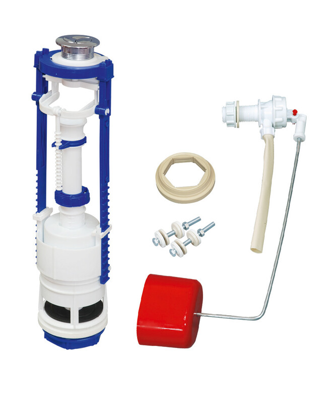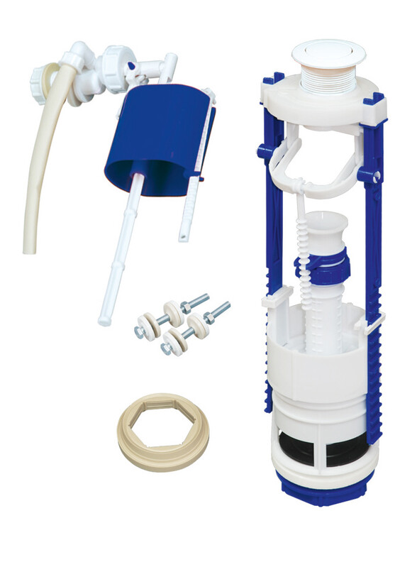 Арматура РБМ АС-12.1 нижняя подводка, Кнопка белая, 2-х уровневая, универсальный клапан