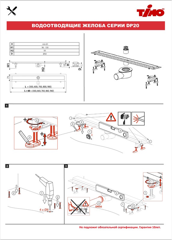 Комплектуется комбинированным затвором, поворотным сифоном и монтажным комплектом с гидроизоляционной мембранной пленкой из полиуретана.