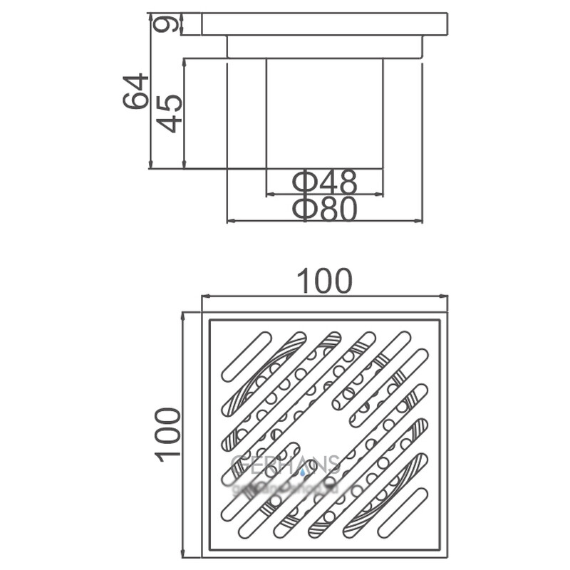 K81710-10 Трап 50 вертикальный GERHANS латунь 100*100 (хром)