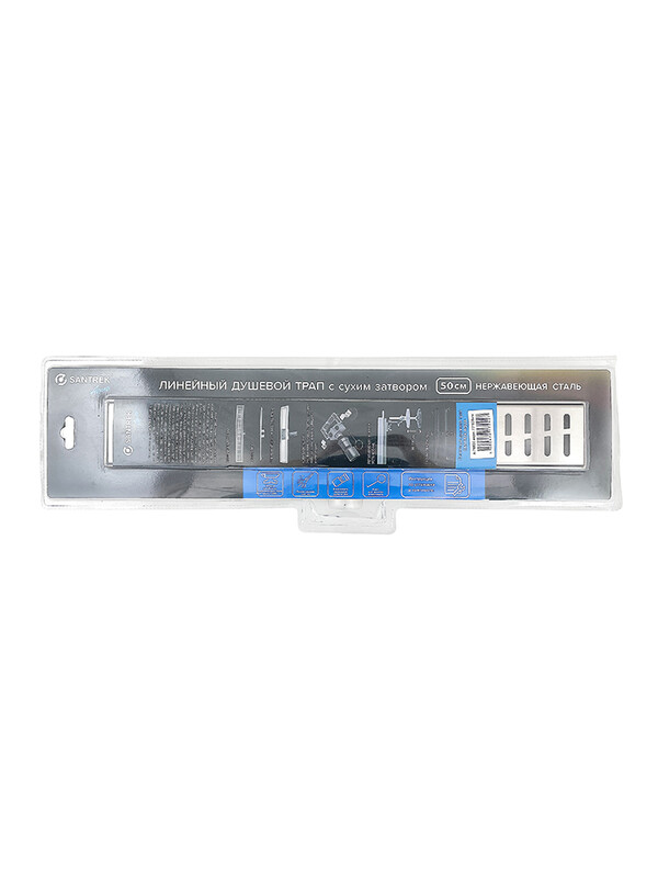 Линейный душевой трап SANTREK AQUA A-70500 нерж 70*500мм (неповоротный горизонтальный выпуск, ф40) сухой затвор и гидрозатвор