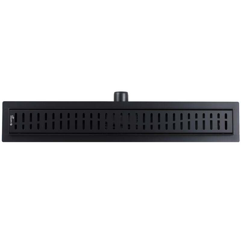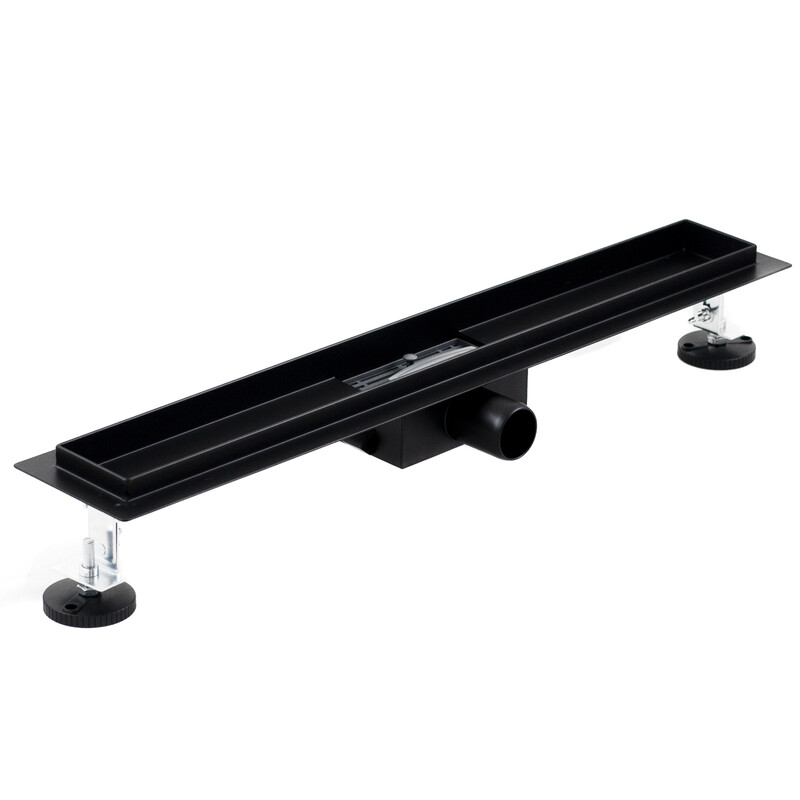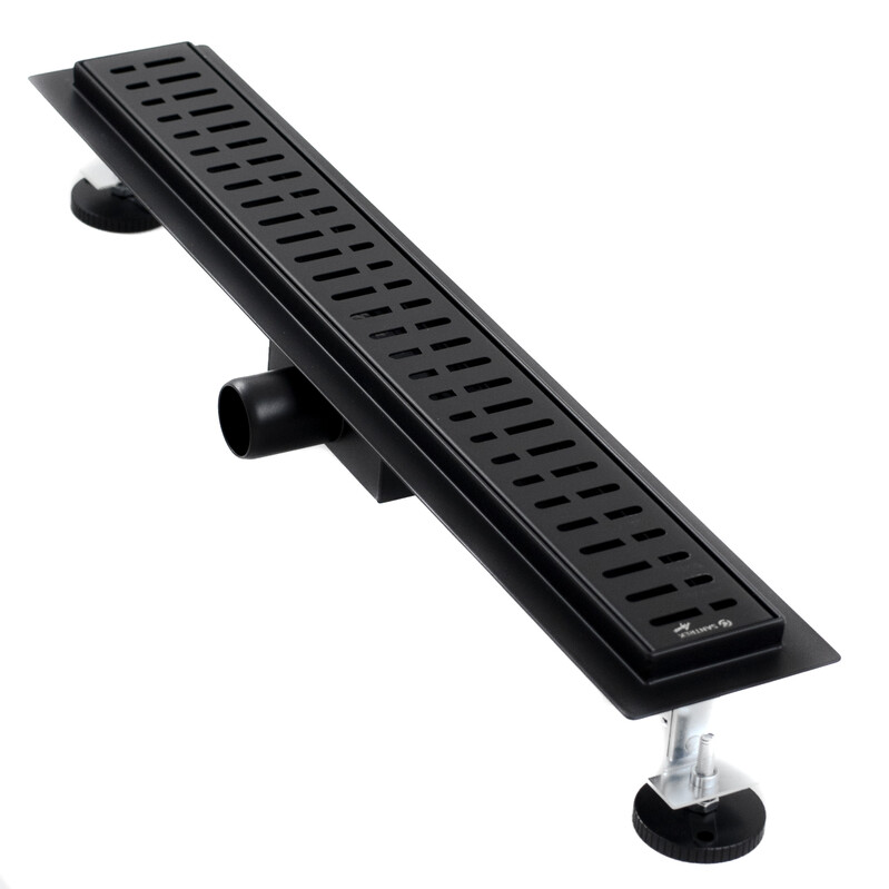 Линейный душевой трап SANTREK AQUA A-70600 BLACK нерж 70*600мм (неповоротный горизонтальный выпуск, ф40) черный матовый, сухой затвор и гидрозатвор