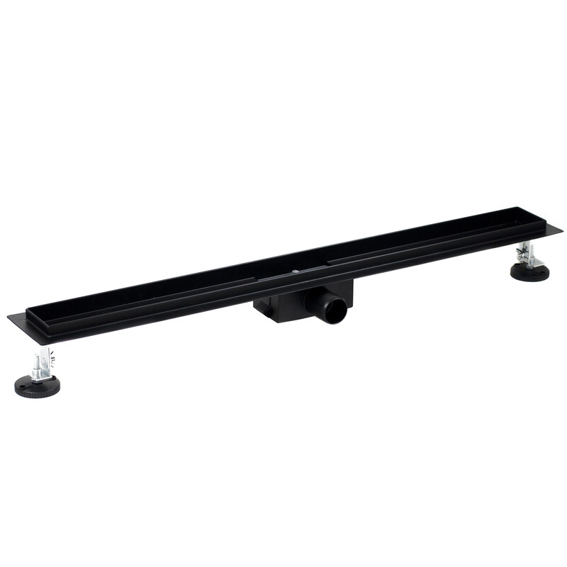 Линейный душевой трап SANTREK AQUA A-70800 BLACK нерж 70*800мм (неповоротный горизонтальный выпуск, ф40) черный матовый, сухой затвор и гидрозатвор