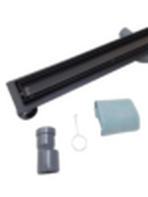 Линейный душевой трап SANTREK AQUA B-70900 BLACK нерж 70*900мм (горизонт выпуск 360 гр, ф40) (решетка щелевая, под плитку) сухой затвор и гидрозатвор