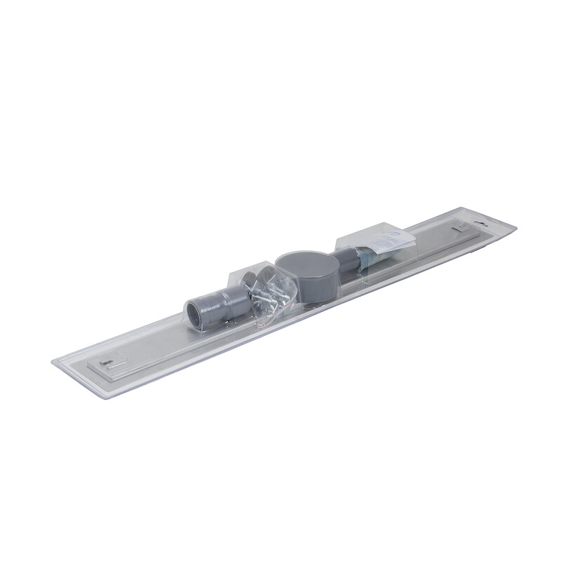 Линейный душевой трап SANTREK AQUA B-70900 нерж 70*900мм (горизонтальный выпуск 360 гр, ф40) (решетка щелевая, под плитку) сухой затвор и гидрозатвор