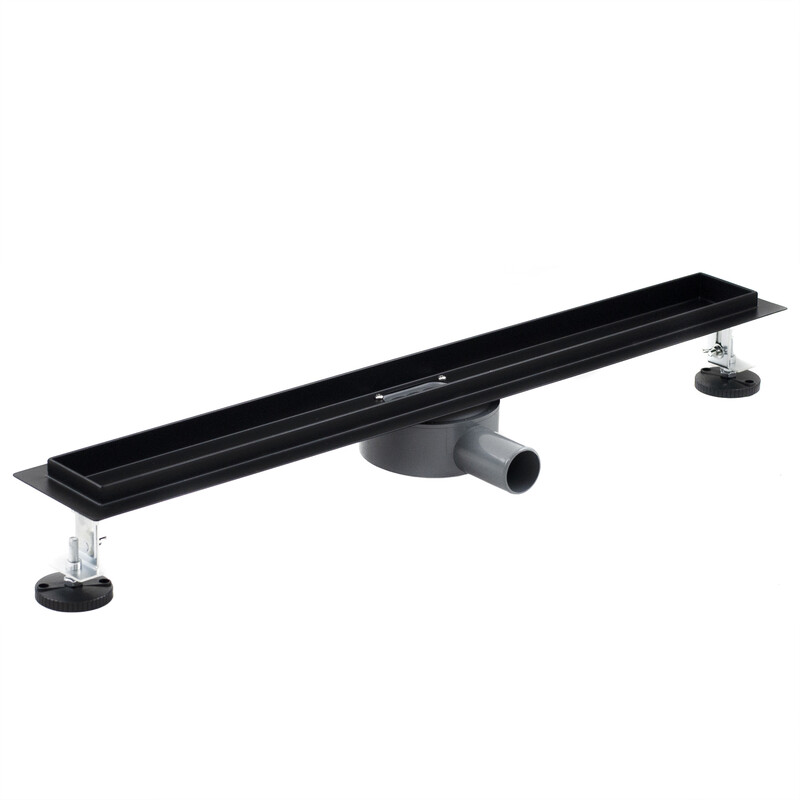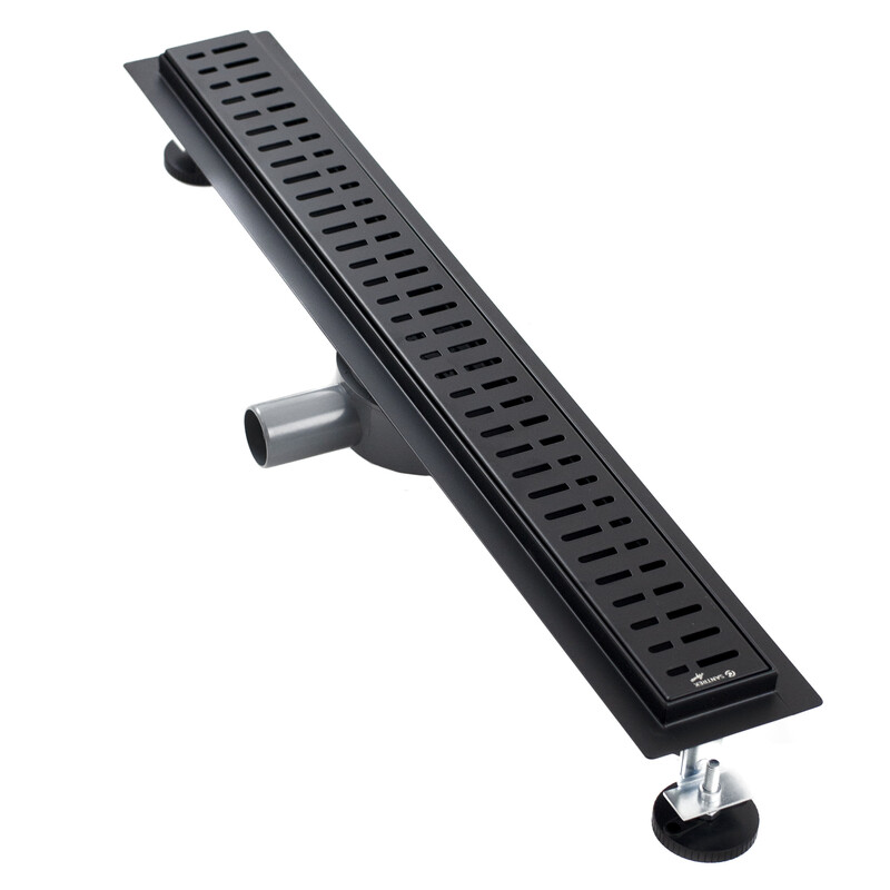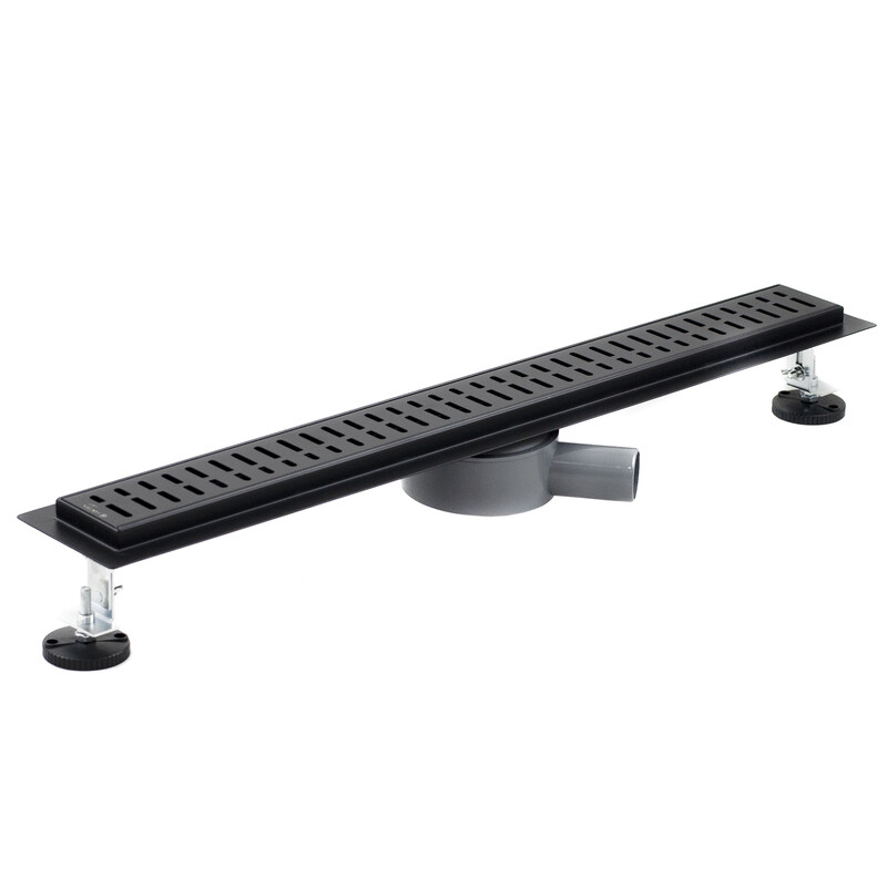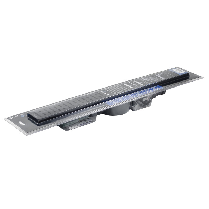 Линейный душевой трап SANTREK AQUA С-70700 BLACK нерж 70*700мм (горизонтальный выпуск 360 гр, ф40) черный матовый,сухой затвор и гидрозатвор