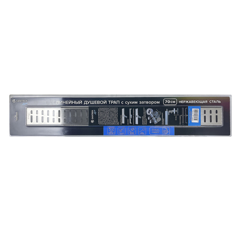 Линейный душевой трап SANTREK AQUA С-70700 нерж 70*700мм (горизонтальный выпуск 360 гр, ф40) сухой затвор и гидрозатвор