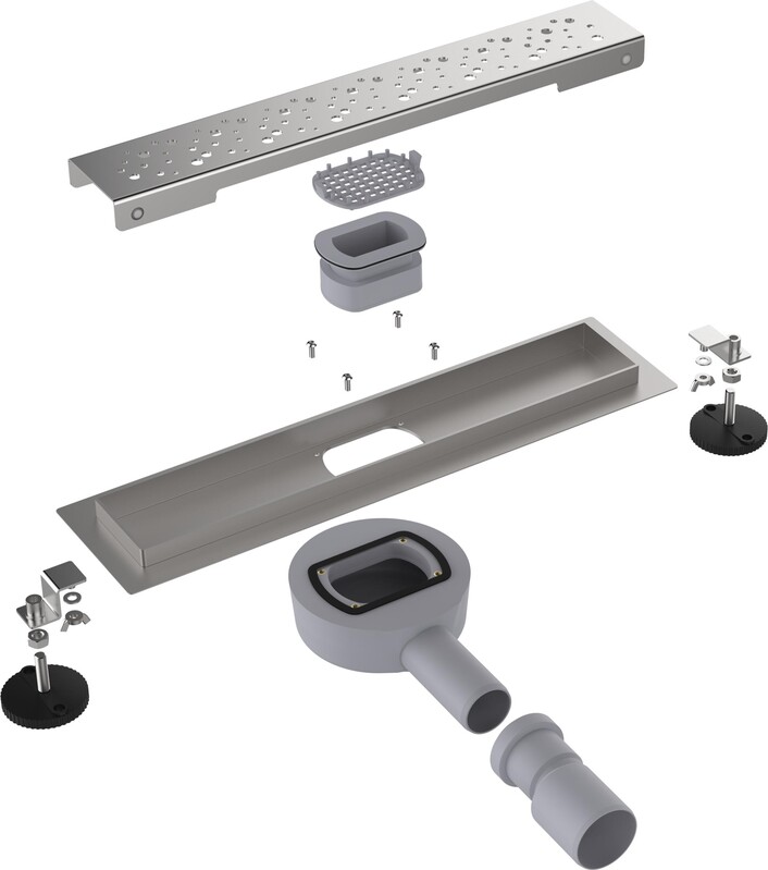 Линейные трапы предназначены для отвода стоков воды из душа с уровня пола. Линейные трапы Aqunat оборудованы "сухим" затвором, препятствующим попаданию запахов канализации в помещение даже при редком использовании душа. Идеально подходит для использования совместно с устройством «теплого пола», который быстро высушивает гидрозатвор. Линейные трапы отличаются повышенной пропускной способностью слива, до 45л/мин. Конструкция состоит из душевого лотка на регулируемых ножках, коробки «сухого затвора» с трубкой отвода и декоративной металлической решетки. Упакован в прозрачный блистер. Преимущества линейных трапов Аквант: металлический лоток, исключающий деформацию или поломку при монтаже; поворотный выпуск, облегчающий монтаж; переходная трубка под диаметр 40/50мм в комплекте; система сухого затвора с утяжелением на крышечках; легкая система очистки; специальный крючок для удобного съема декоративной решетки в комплекте.