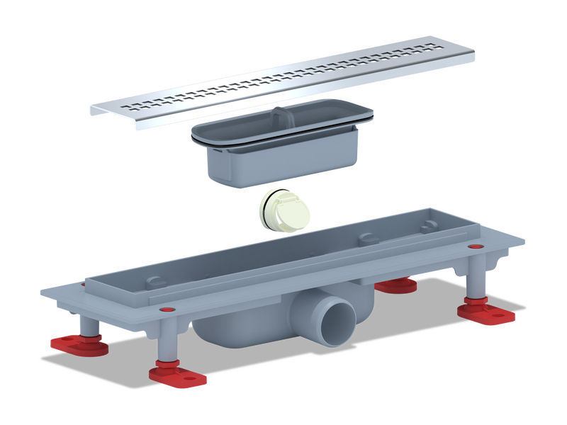 Трап изготовлен из прочного АБС-пластика, устойчивого к высоким температурам, ударным нагрузкам и воздействию влаги. Отличается надежностью конструкции и продолжительным сроком эксплуатации. Устанавливается по краям или в углах душевой комнаты и фиксируется с помощью крепежных элементов.