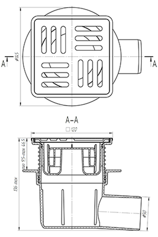 Точечный горизонтальный сливной трап с сухим затвором TQ5714M • Выпуск на канализацию: пластик, Ø50 мм • Тип затвора: сухой затвор • Пропускная способность: 36 л/мин • Высота гидрозатвора: 50 мм • Тип решетки слива: нержавеющая сталь, 120 на 120 мм Предназначен для отвода воды из душевой комнаты или кабины в канализацию. Решетка трапа из нержавеющей стали. В трапе предусмотрен сухой затвор, который препятствует проникновению неприятных запахов из канализации. Конструкция не пропускает в сливную канализацию загрязняющие частицы, предотвращает засоры и легко чистится. Рекомендуется при редком использовании и совместно с "теплыми полами", допустимая нагрузка до 300кг.