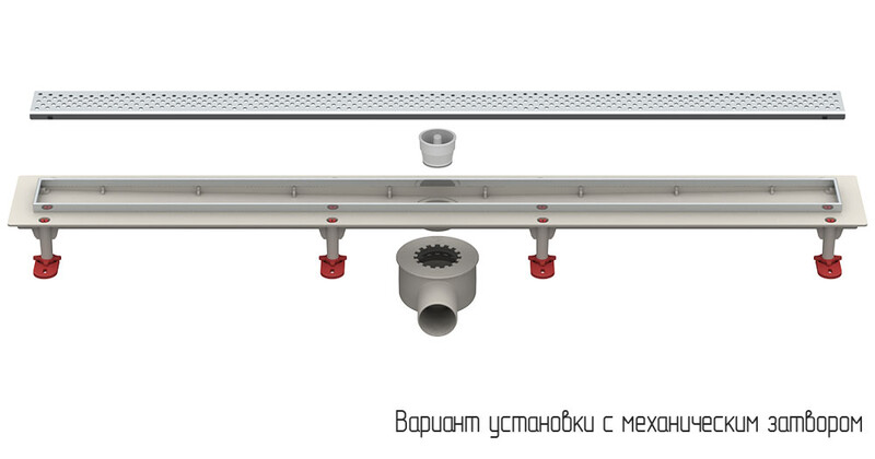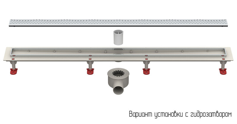 Душевой трап с рамкой – 1 шт., Устройство для снятия решетки – 1 шт., Набор крепежей – 1 компл., Гидроизоляционная лента – 1 компл., Упаковка – 1 шт.