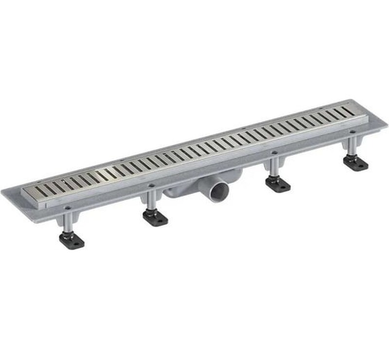 Татполимер. Трап линейный ABS-пластик, сухой + гидрозатвор, 70х 900мм (горизонт выпуск,ф50), нерж решетка типа C (щелевая, под плитку) (ТП-55.1C-900)