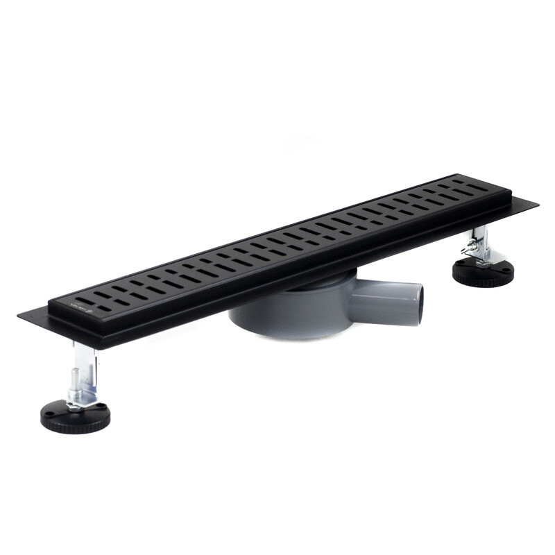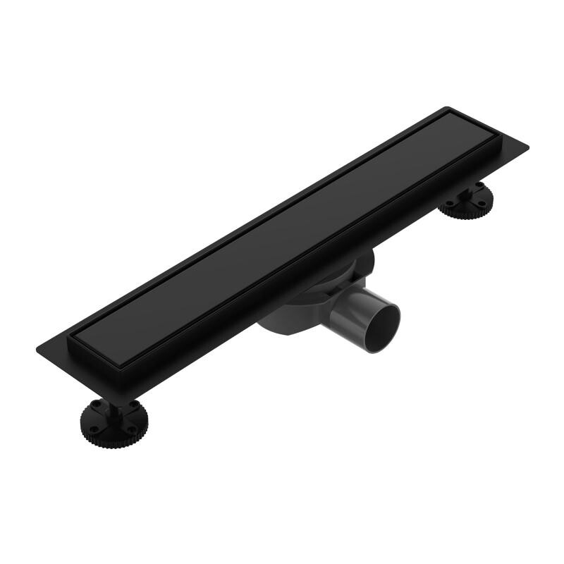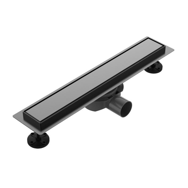 Линейный душевой трап SANTREK AQUA С-70600 BLACK нерж 70*600мм (горизонтальный выпуск 360 гр, ф40) черный матовый, сухой затвор и гидрозатвор