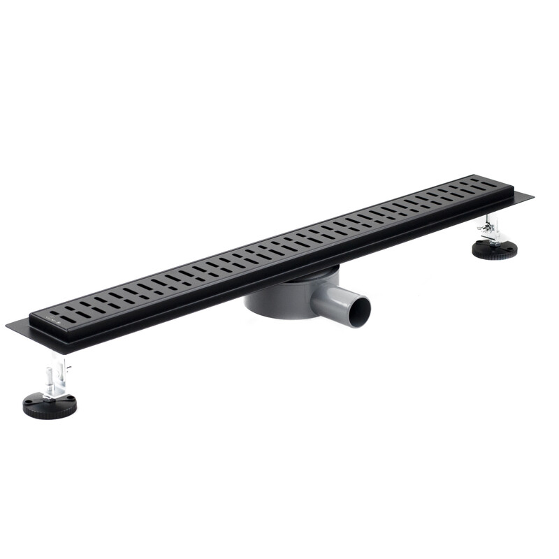 Линейный душевой трап SANTREK AQUA С-70800 BLACK нерж 70*800мм (горизонтальный выпуск 360 гр, ф40) черный матовый, сухой затвор и гидрозатвор