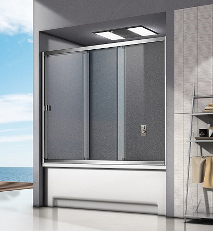Эта шторка выполнена из прочного пластика или стекла ( в исполнении грейпи прозрачного типа), которая хорошо переносит влагу и не выцветает на солнце. Шторка легко монтируется и установлена на металлические профиля, которые входят в комплект. Некоторые модели можно отрегулировать, чтобы она подходила к размеру ванны.