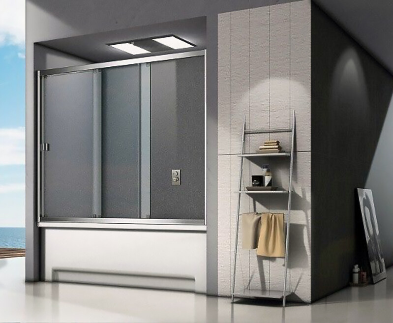 Эта шторка выполнена из прочного пластика или стекла ( в исполнении грейпи прозрачного типа), которая хорошо переносит влагу и не выцветает на солнце. Шторка легко монтируется и установлена на металлические профиля, которые входят в комплект. Некоторые модели можно отрегулировать, чтобы она подходила к размеру ванны.