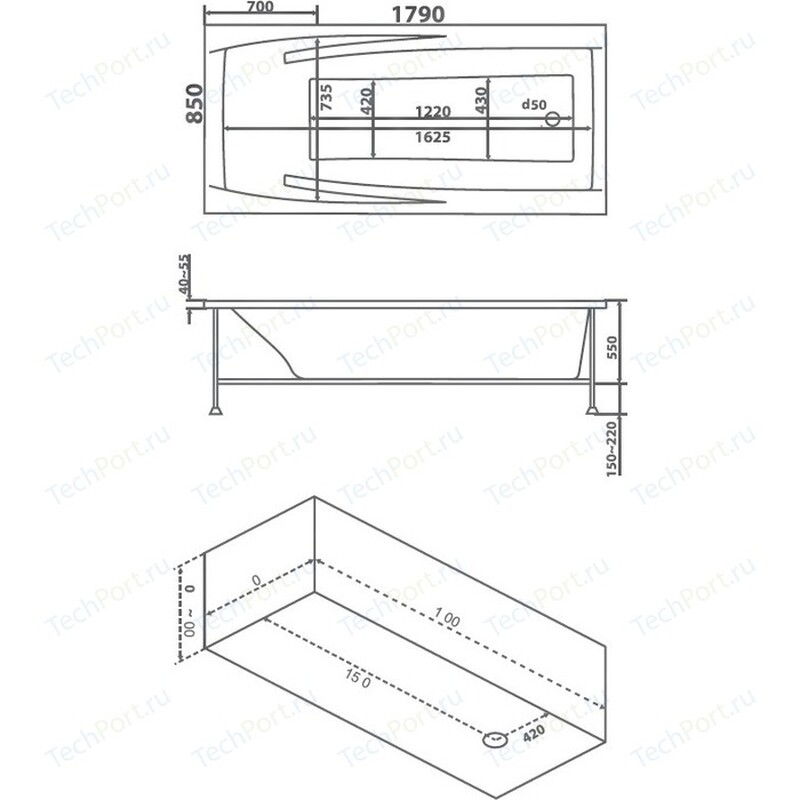 - наличие идеальной геометрии по горизонтальной плоскости борта дает возможность устанавливать на борт ванны шторки.